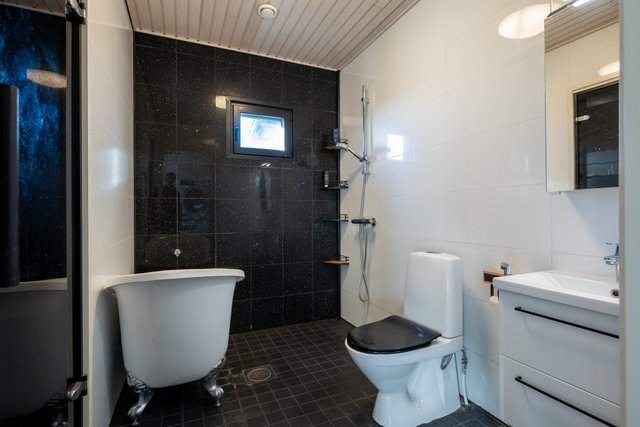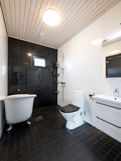 - Suihku, wc-istuin, allaskaappi, peilikaappi, bidee-suihku, ja lattialämmitys