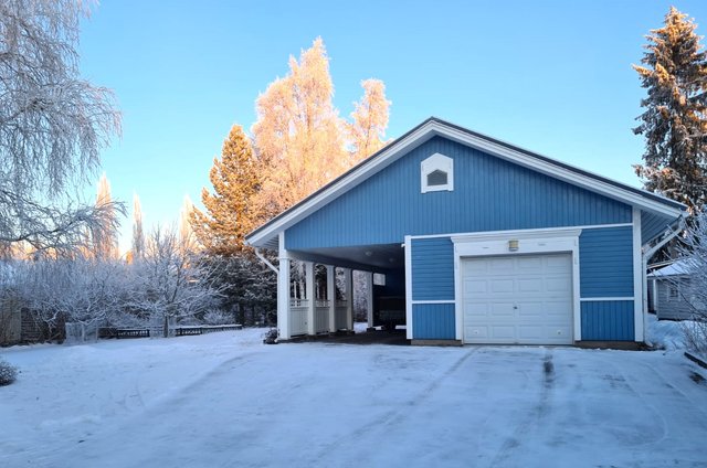 - Puuvarasto 8,0 m2 (kylmä) Autotalli -katos: 50,0 m2, josta lämmin varasto 14,0 m2 ja autotalli 29,0 m2 + käyttöullakko