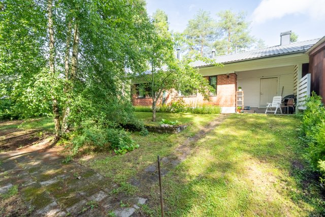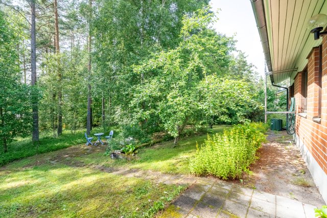 Olohuoneen varaava takka luo lämpöä ja tunnelmaa, ja suuret ikkunat avautuvat suojaisalle takapihalle. Kylpyhuoneesta on suora kulku takapihalle, joka tarjoaa tilaa niin lasten leikeille, puutarhaharrastuksille ja rentoutumiselle luonnon keskellä.