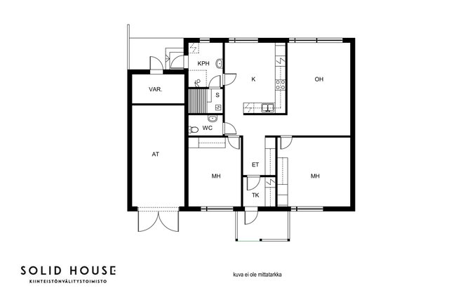 - Makuuhuoneet ikkunat etupihan puolelle. Olohuoneen ja keittiön ikkunat takapihalle.