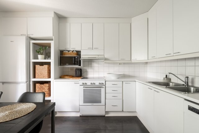 - Jääkaappipakastin, uuni, astianpesukone, liesi, ja liesituuletin