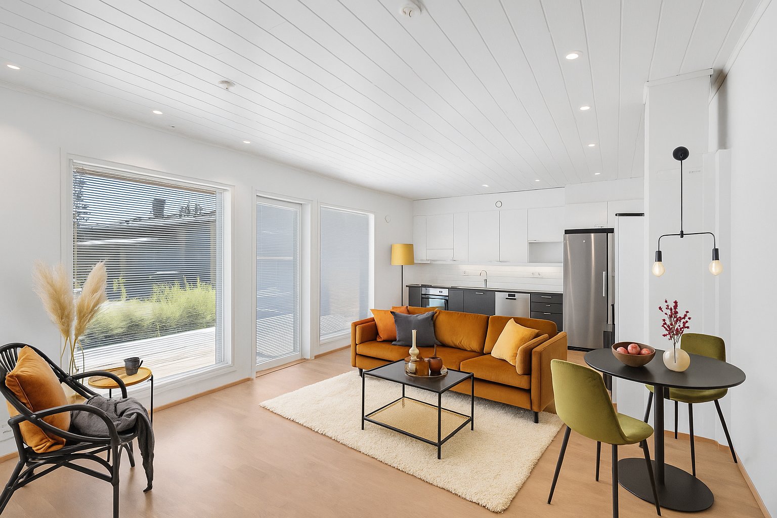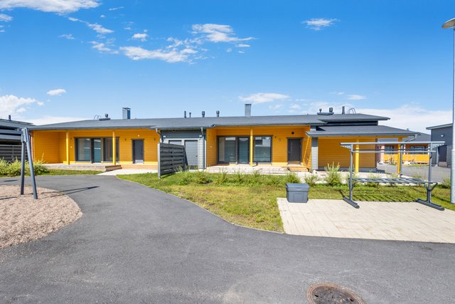 Tyylikäs ja moderni, yhdessä tasossa rakennettu paritalohuoneisto tekee arjesta helppoa ja esteetöntä. Laadukkaat materiaalit, vesikiertoinen lattialämmitys kaukolämmöllä ja tunnelmallinen takka tuovat asumiseen mukavuutta. Keittiö on varusteltu kattavasti, asuntokohtaiset mittarit (sähkö, vesi, kaukolämpö) tekevät kulutuksesta läpinäkyvää.