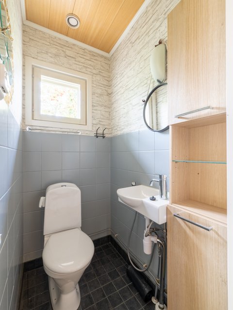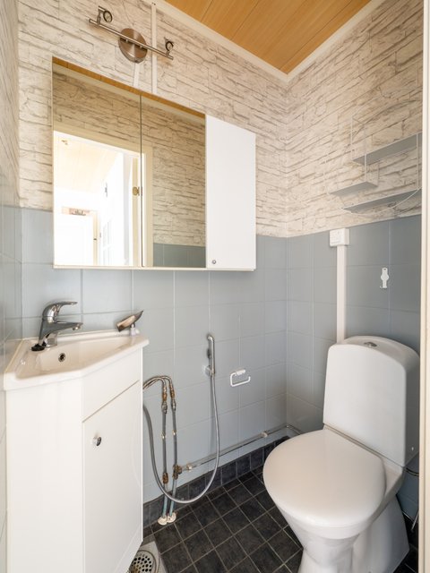 - Suihku, suihkukaappi, pesukoneliitäntä, ja lattialämmitys