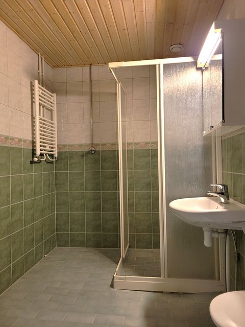 - WC-istuin, pesukoneliitäntä, suihku, peilikaappi, ja kiinteät valaisimet
