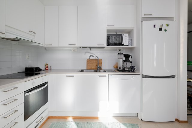 - Jääkaappipakastin, liesituuletin, astianpesukone, erillisuuni, ja liesi