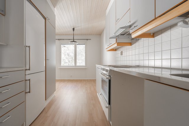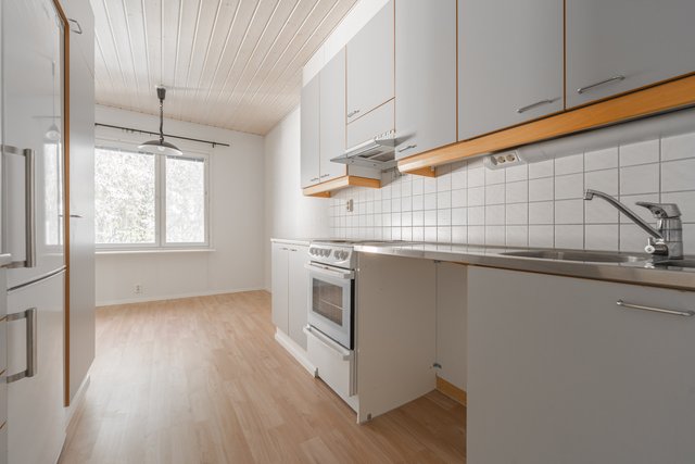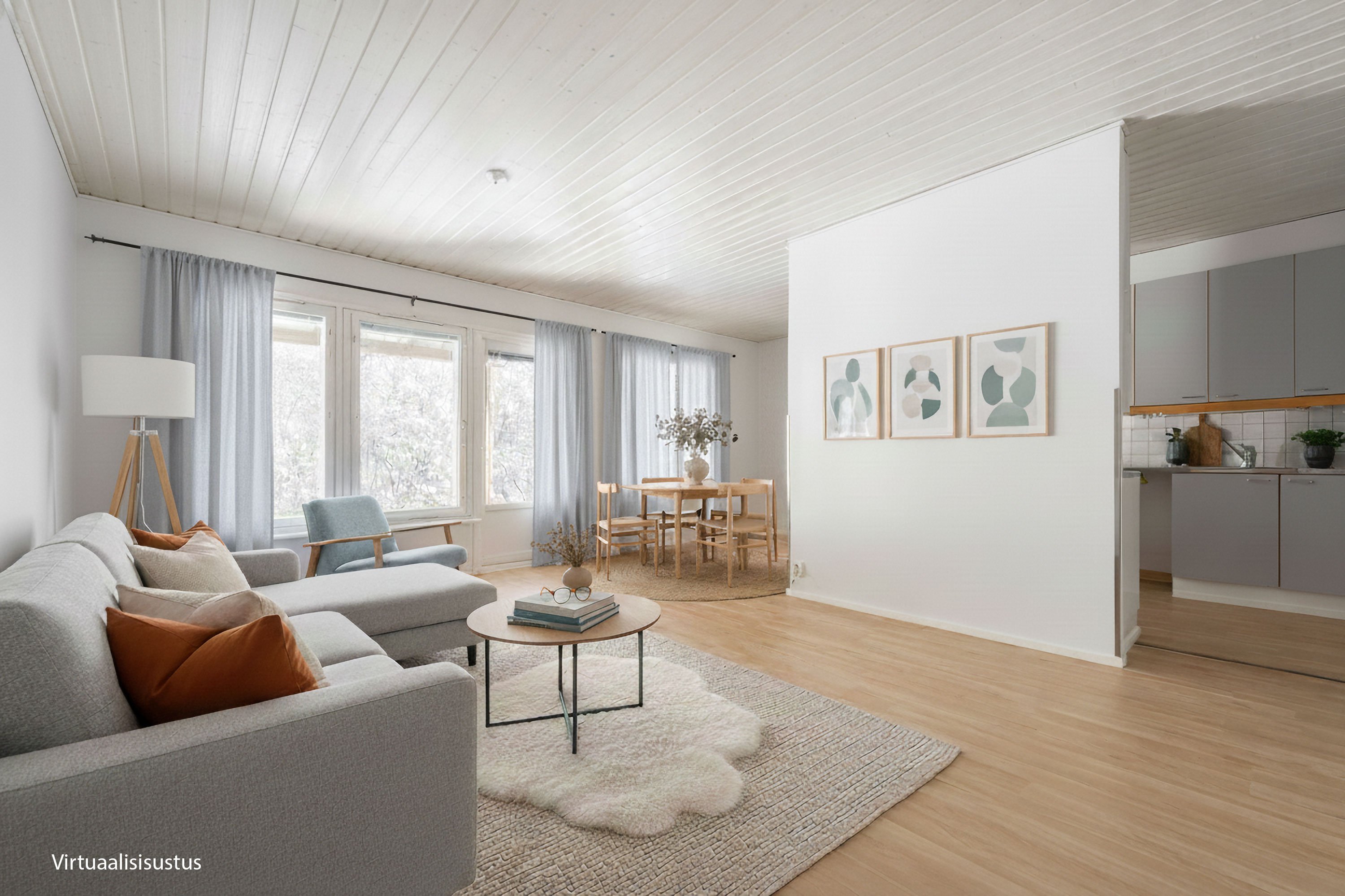 Huoneistossa on valoisat ja siistit pinnat sekä toimiva pohjaratkaisu. Omaa arkea ilahduttavat oma sauna ja suojaisa takapiha. Heti sisäänkäynnin vierestä löytyy käytännöllinen ulkovarasto. Pienellä pintaremontilla loihdit juuri sinun näköisen oman kodin.