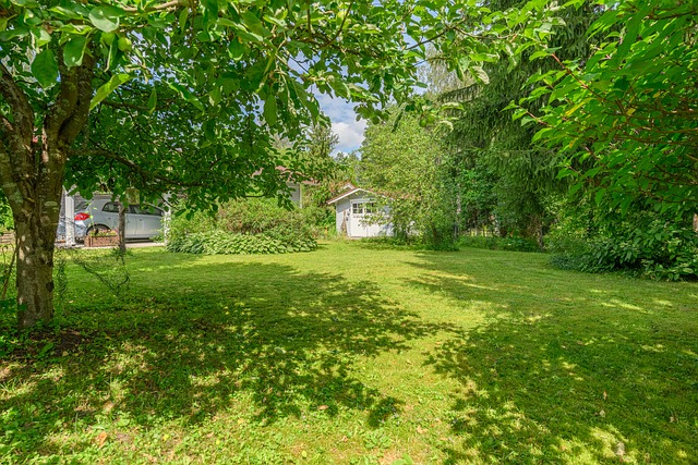 - Vehreä, tasainen ja hyvin hoidettu puutarhatontti.