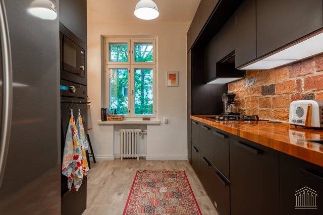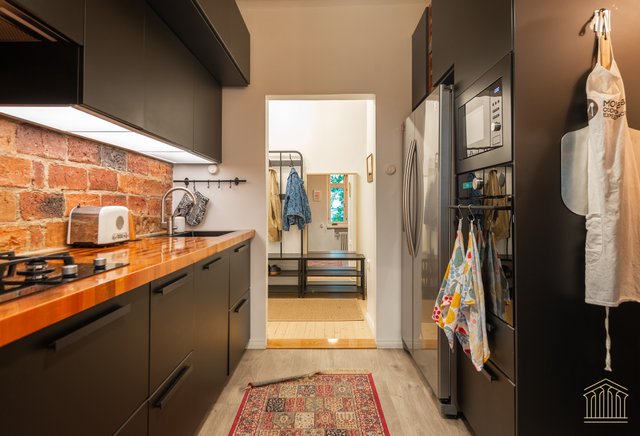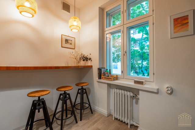 Asunnossa on hyvin lämminhenkinen välimerellistyylinen keittiö kivalla aamiaispöydällä, keittiössä on liesi, missä on yhdistetty kaasu- ja sähkötoiminnallisuus, tämä antaa ruuanlaitosta pitävälle oikein kivan lisäulottuvuuden! Asunnon ikkunoiden ilmansuunnat ovat 3:een eri suuntaan, joten luonnon valoa tulvii mukavasti asuntoon, myös asunnon hyväkuntoiset vanhat puulattiat ovat aikakaudelle ominaiset!