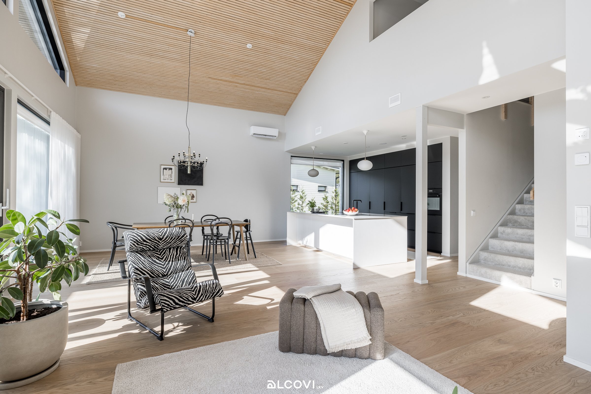Tämä kaksitasoinen omakotitalo hurmaa jo ensisilmäyksellä. Vaaleat, skandinaaviset pinnat ja tasokkaasti viimeistellyt tilat luovat kokonaisuuden, joka on yhtä aikaa sekä ajaton että kutsuva. Jokainen yksityiskohta on harkittu ja tilat muovautuvat joustavasti elämäntilanteiden mukaan.