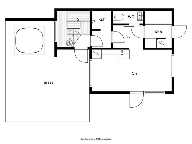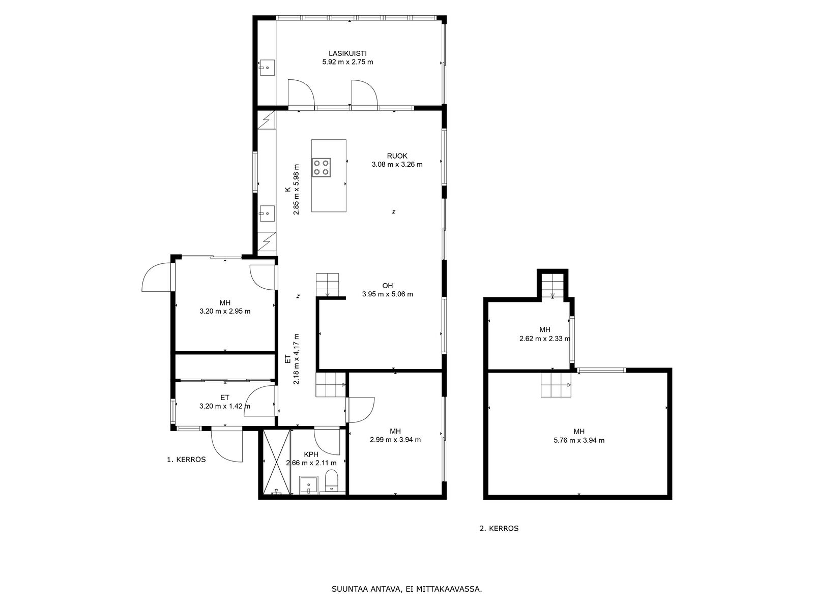 Et, 2mh, keittiö/olohuone avointa, 2 nukkumaparvea, wc/kh, kesäkeittiö