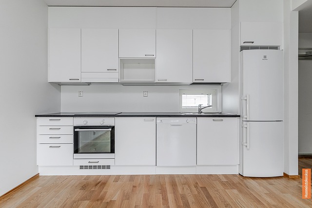 - Jääkaappipakastin, astianpesukone, liesi, erillisuuni, ja liesituuletin