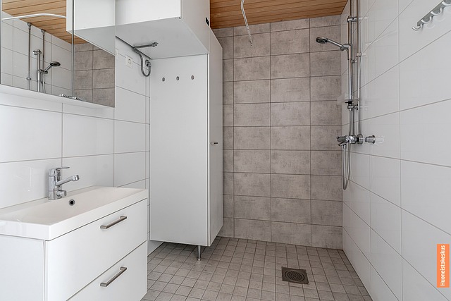 - Pesukoneliitäntä, wc-istuin, peilikaappi, suihku, ja lattialämmitys