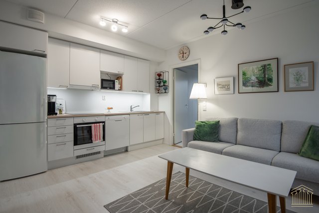 Tervetuloa tutustumaan tähän upeaan, vaaleansävyiseen skandinaavista tyyliä henkivään kulmahuoneistoon! Asunto hurmaa heti ensiaskeleella valoisuudellaan, selkeydellään ja laadukkailla materiaaleillaan. Koko huoneistossa kiertävä lattialämmitys tuo asumiseen arjen luksusta ja tekee tiloista miellyttävän tasalämpöiset ympäri vuoden. Poikkeuksellisen suuri parveke toimii kuin lisähuoneena keväästä syksyyn, ja järkevästi suunnitellun pohjaratkaisun ansiosta jokainen neliö on hyödynnetty tehokkaasti tässä kodissa tila todella toimii.