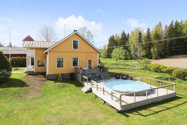 Talon päädyssä on suuri terassialue jossa on suuri 25 m3 kokoinen uima-allas.