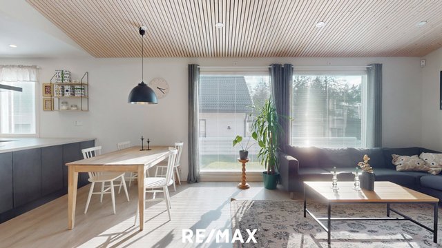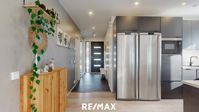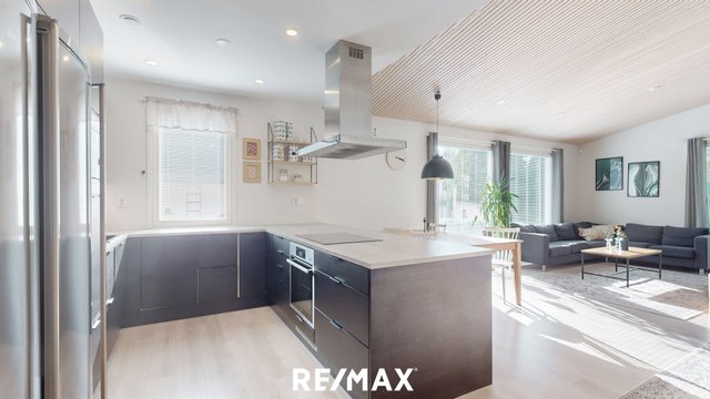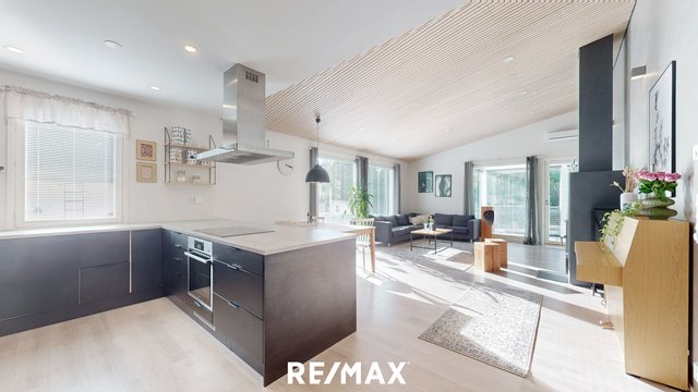 Talon sydän on avara olohuone, joka yhdistyy saumattomasti tyylikkääseen Topi-Keittiöiden avokeittiöön. Keittiössä on kaikki tarvittavat nykyaikaiset varusteet, kuten erillinen uuni ja induktioliesi, ja keittiösaareke tuo lisätilaa ja -mukavuutta. Kolme makuuhuonetta tarjoavat rauhalliset tilat levätä ja rentoutua.