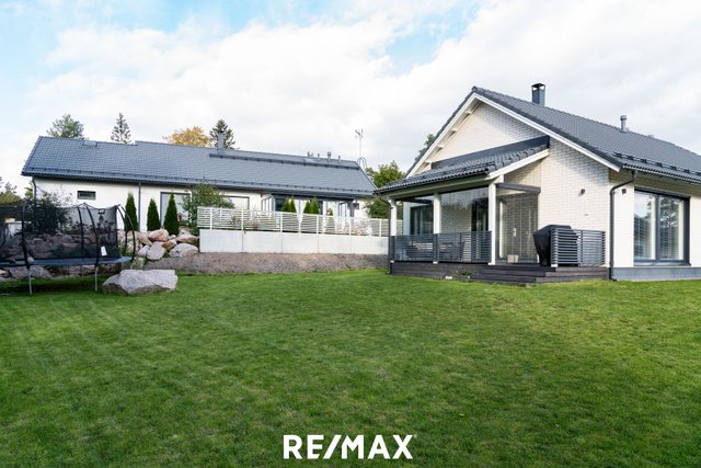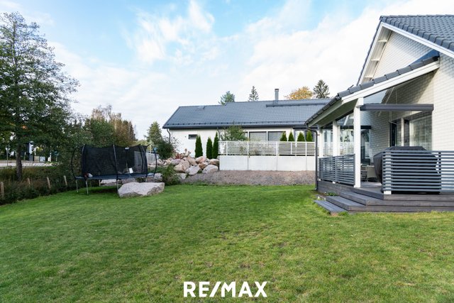 Talon takapihalla on iso lasitettu terassi, jossa voi nauttia ilta-auringosta. Talon sivu- ja takapihalla iso yksitasoinen nurmikenttä sekä etupihan tasainen kivetys, jossa lasten on mukava leikkiä ja pelata.