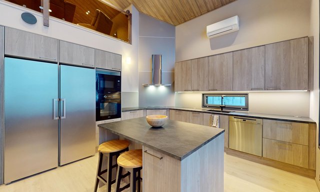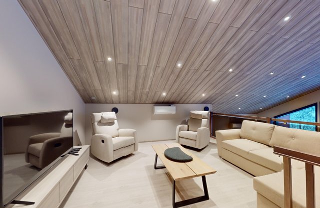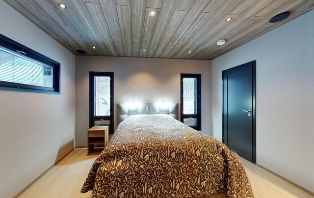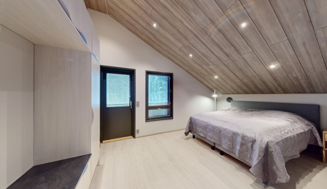 The villa's spacious living room and open kitchen form a cozy whole, with large windows bringing in plenty of natural light. Four bedrooms offer plenty of space for the whole family or a group of friends. The sauna area creates a relaxing and luxurious sauna experience.