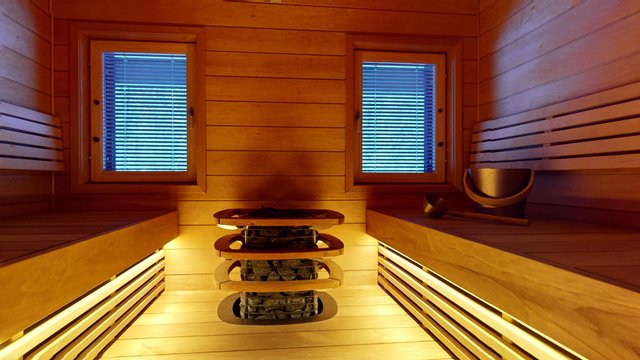 - Seinät ja katto tervaleppä, lauteet lämpökäsitelty haapa