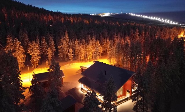 The villa is equipped with modern technology, such as geothermal heating and an air source heat pump, making it an energy-efficient choice. The location is excellent, with the Ski-Bus stopping about 500 meters away and Kittilä Airport within easy reach.