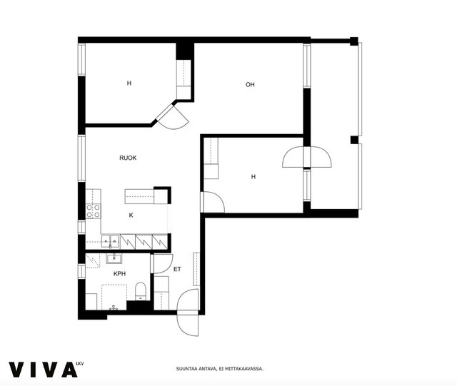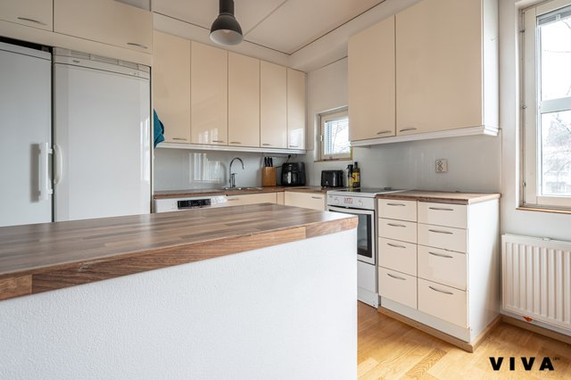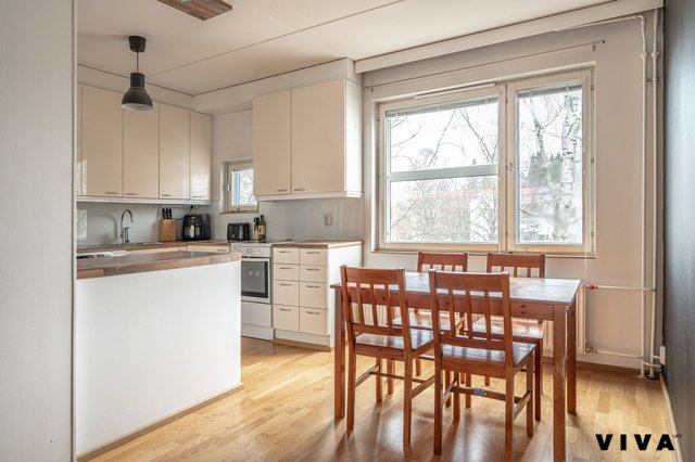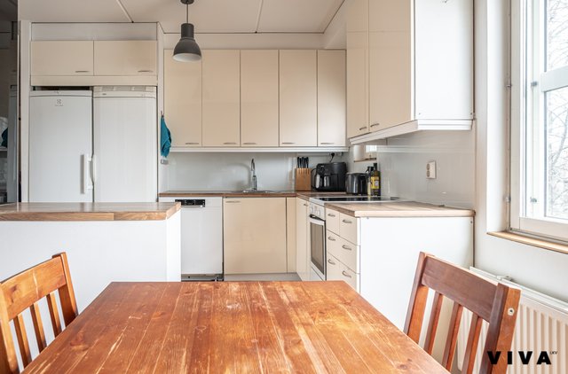 Tässä kodissa se rytmi on: tilava keittiö → selkeä olohuone → kaksi oikeaa makuuhuonetta → rauha.