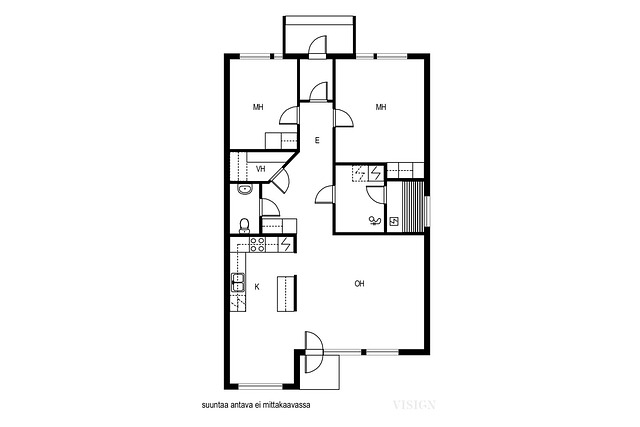 - Pesukoneliitäntä, lattialämmitys, suihku, ja kiinteät valaisimet