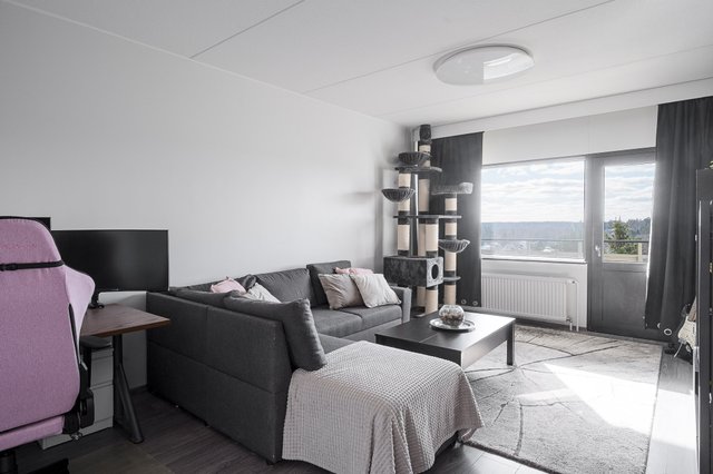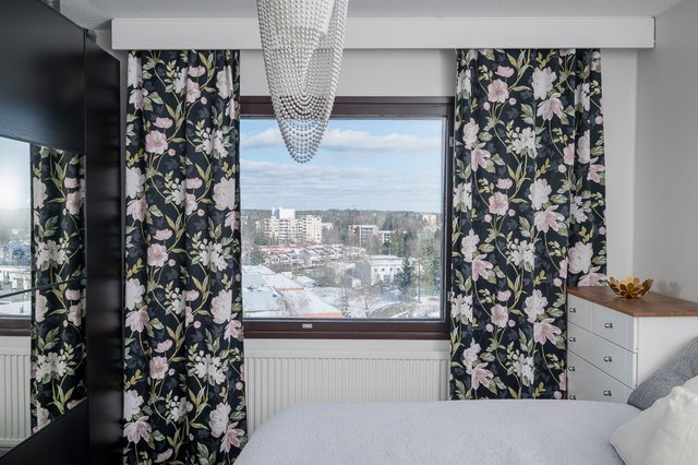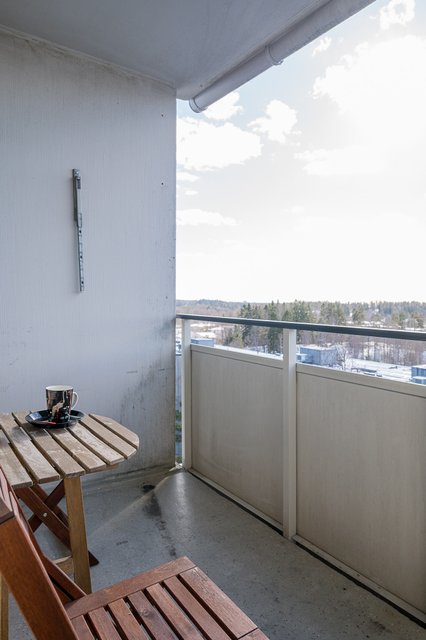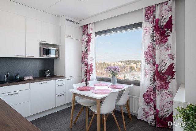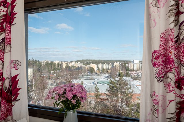 Ylimmän kerroksen läpitalon päätyasunto, joka tarjoaa valoisaa ja avaraa asumista yhdeksännen kerroksen huikein näkymin kahteen eri suuntaan!