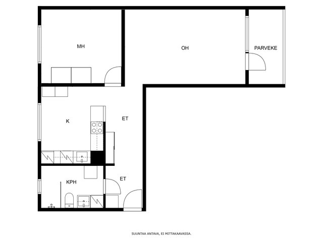 - Mainittu pinta-ala saattaa tämän ikäisessä kohteessa poiketa olennaisesti nykyisten standardien mukaan laskettavasta asuinpinta-alasta. Todellinen asuinpinta-ala voi olla yhtiöjärjestyksessä, isännöitsijäntodistuksessa ja esitteessä mainittua pienempi tai suurempi.