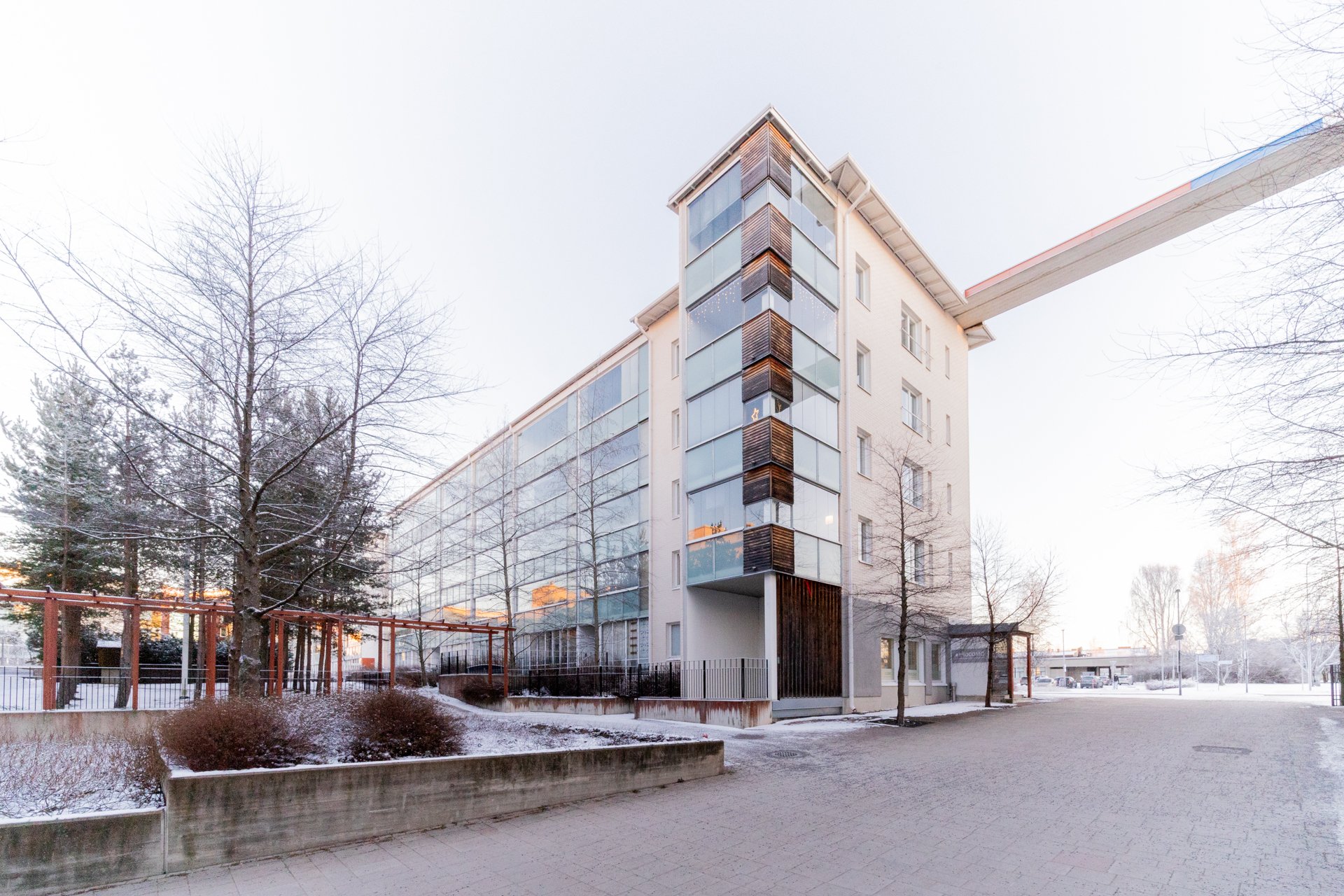 - Pohjankartanon koulu ja Madetojan musiikkilukio sekä Oulun konservatorio tien toisella puolen.