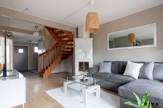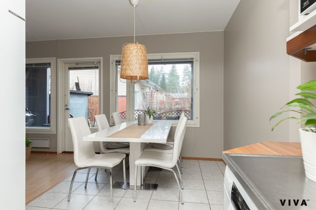 Asuinalue on arvostettu ja rauhallinen, mutta samalla kaikki tärkeä on lähellä. Koulut, päiväkodit, lähikauppa sekä lenkkipolut ja hiihtomaastot löytyvät vain lyhyen matkan päästä. Tämä huoneisto tarjoaa juuri sitä, mitä moni etsii – käytännöllisyyttä, tyyliä ja heti asumisvalmista mukavuutta.