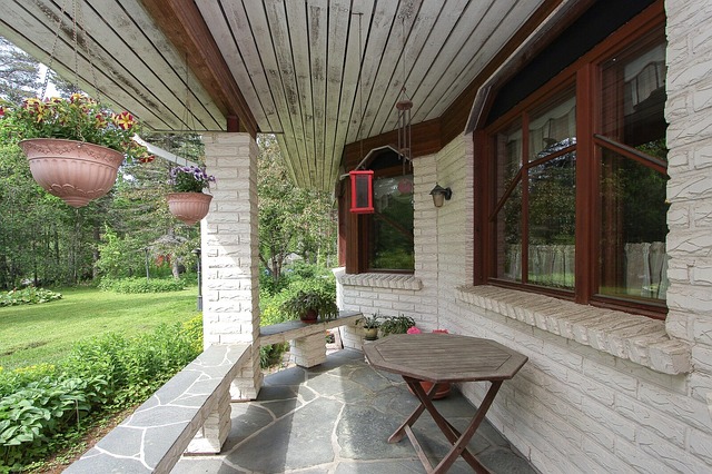 - Seinät pääsääntöisesti puolipaneloidut, 3 makuuhuoneista tapetoidut ja yksi puupaneloitu, kuten myös avoin takkahuone, märkätilat laatoitetut, wc-tilat puolipaneloitu ja osalaatoitettu.