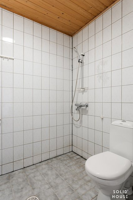 - Pesutilassa suihku, wc-istuin, pesuallas, peili, kiinteät valaisimet, lattialämmitys. Kph / wc-yhdistelmä: suihku, wc-istuin, allaskaapisto, peili, kiinteät valaisimet. Lattiat laattaa, seinät laattaa.