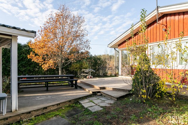- Rullaverhot keittiössä ja yhdessä makuuhuoneessa. Kiinteät valaisimet, Naulakko, lämminvesivaraaja n. 200 l, jätesäiliö, pihavarusteet, istutukset. Ilmalämpöpumppu.