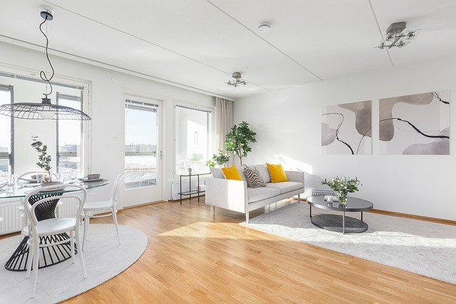 Avokeittiö ja ruokailutila yhdistyvät olohuoneeseen, josta käynti tilavalle lasitetulle parvekkeelle.