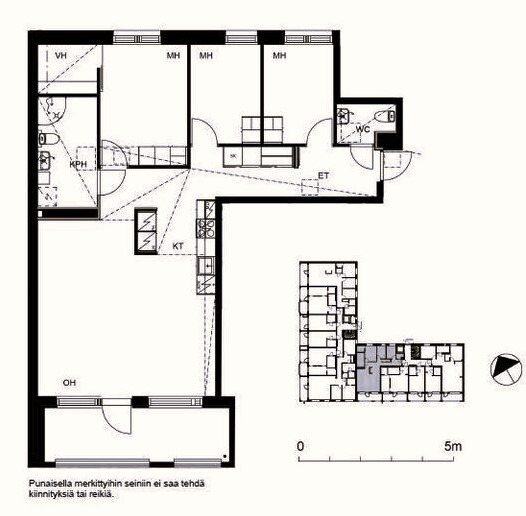 - Jääkaappipakastin, liesituuletin, liesi, ja kiinteät valaisimet, varattu paikka astianpesukoneelle
