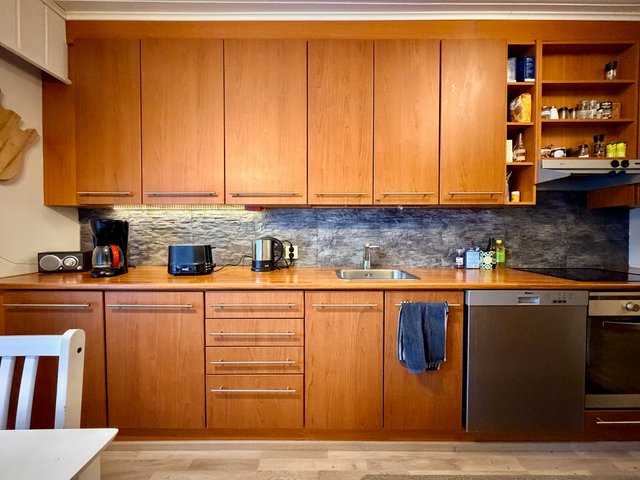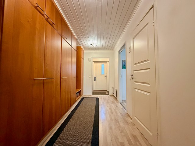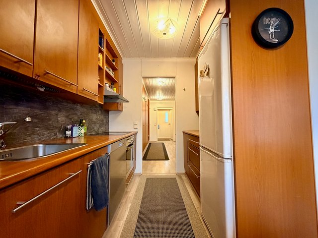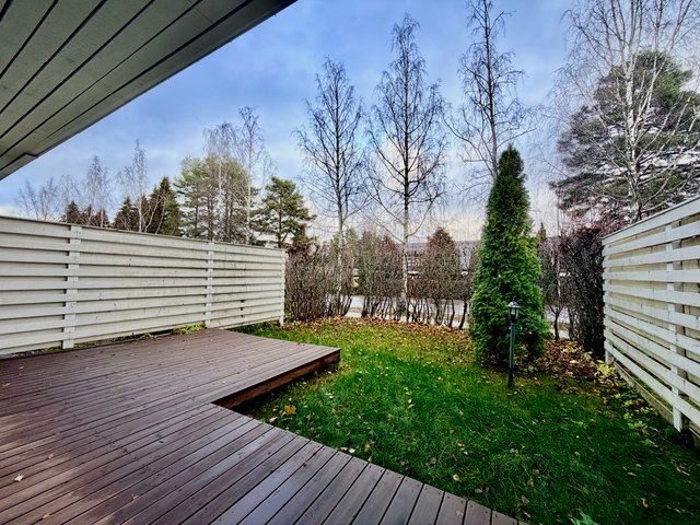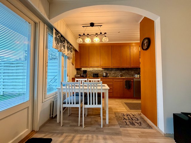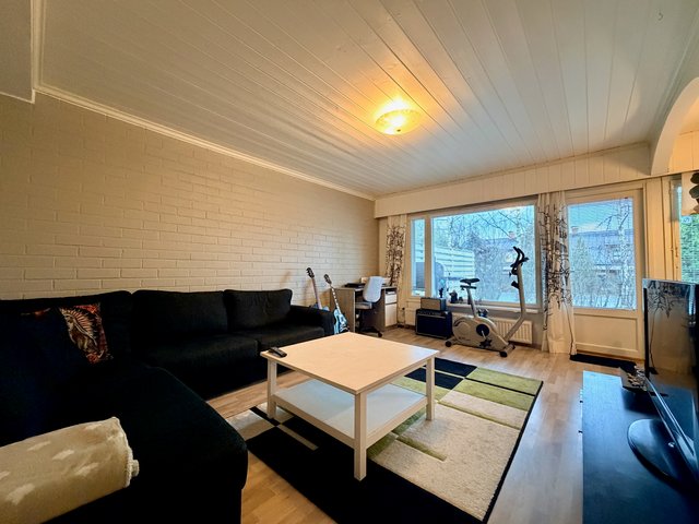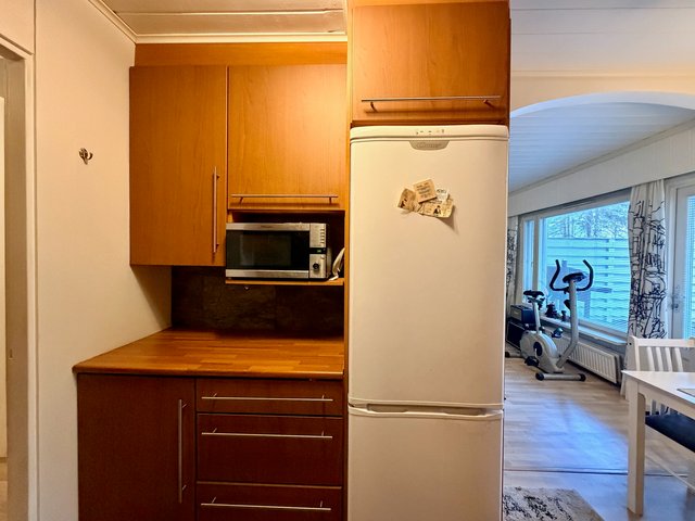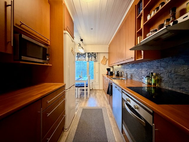 Huoneiston lattiat laminaattia ja seinäpinnat pääosin maalattu, osin tapetoitu. Keittiö on hyvin varusteltu, ja siellä on kaikki tarvittava arjen sujuvuuteen. Oman saunan ansiosta voit nauttia rentouttavista löylyistä milloin tahansa. Huoneiston aidatulla takapihalla on terassi, johon käynti olohuoneesta.