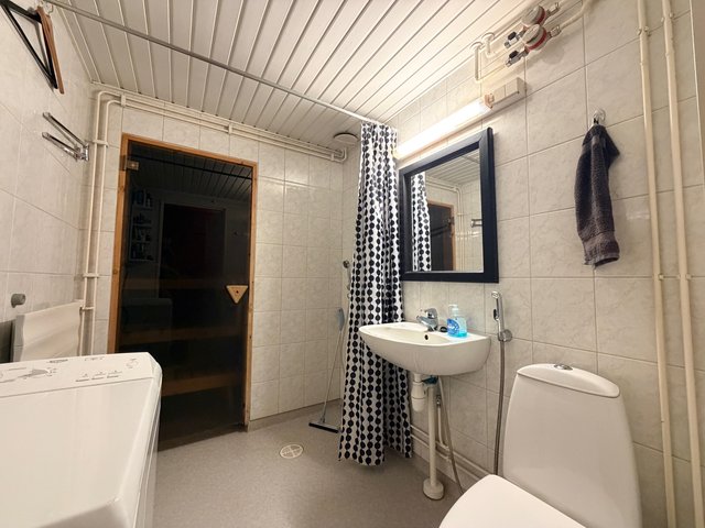 - WC-istuin, suihku, peili, ja pesukoneliitäntä