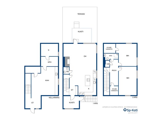 3h+avokeittiö+rt+khh+harraste/oleskelutilaa +s + kph+ vh+2 x wc+ varastotilaa.