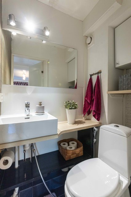 - Suihku, wc-istuin, pesuallas, ja allaskaappi
