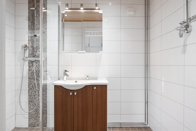 - Suihku, peilikaappi, allaskaappi, pesukoneliitäntä, ja suihkuseinä