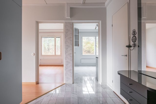 Asunnossa on avara olohuone sekä kaksi tilavaa makuuhuonetta. Keittiöstä löytyy kaikki tarpeellinen ja pöytä mahtuu ikkunan ääreen. Keittiössä sekä eteisessä on kaunis laattalattia. Kaapistoja löytyy makuuhuoneista sekä tilavasta eteisestä. Kylpyhuone ja erillinen wc on remontoitu aikanaan putkiremontin yhteydessä.