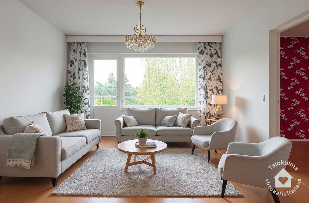 - Iso ja avara olohuone, josta kulku huoneiston parvekkeelle.