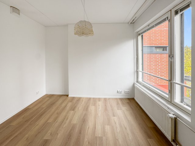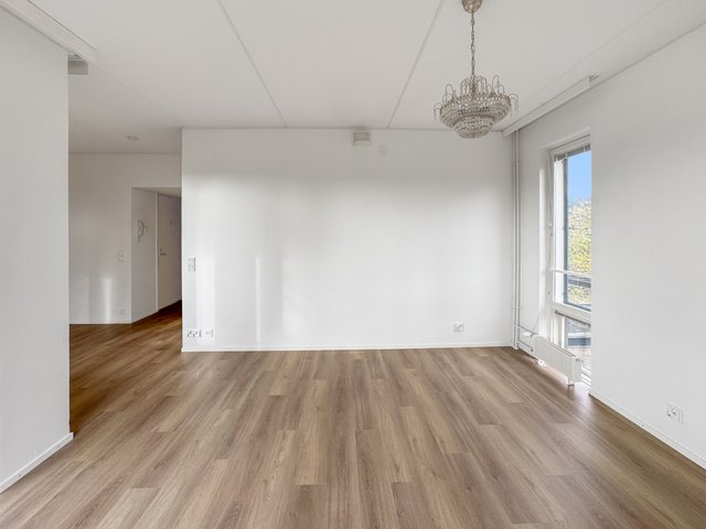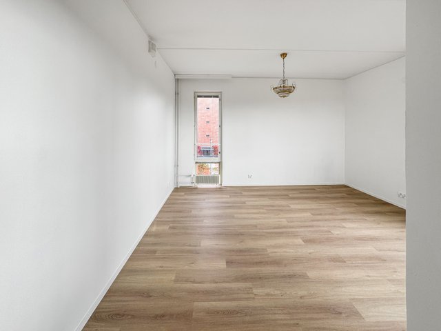 - Avara ja valoisa olohuone, jossa on tilaa sohvaryhmälle. Olohuoneen seinät ovat maalatut ja lattiamateriaali on vinyyliä. Olohuoneesta on käynti lasitetulle parvekkeelle.