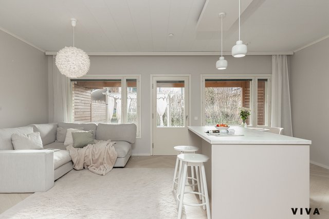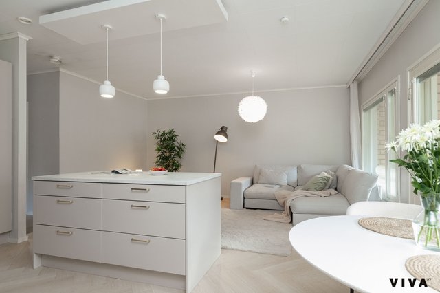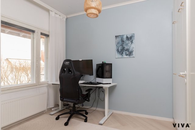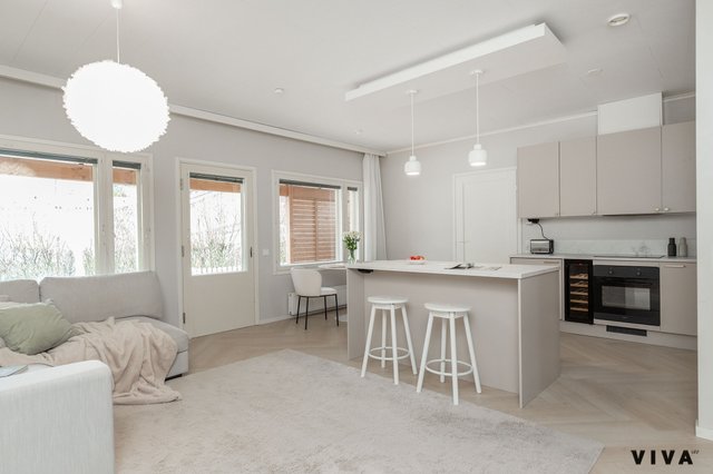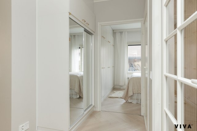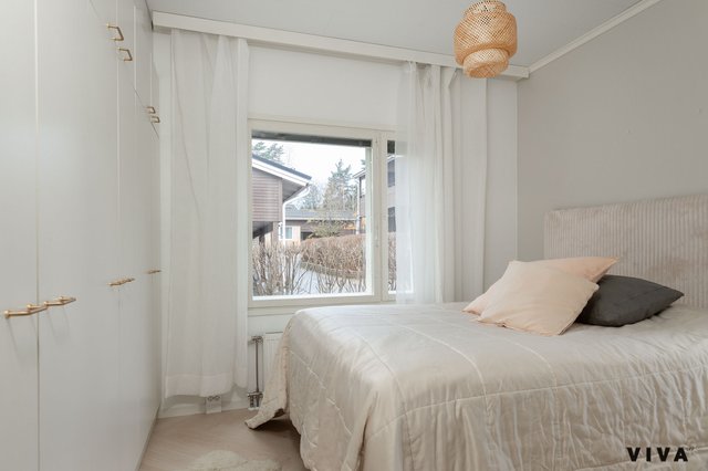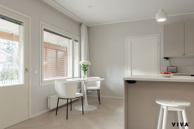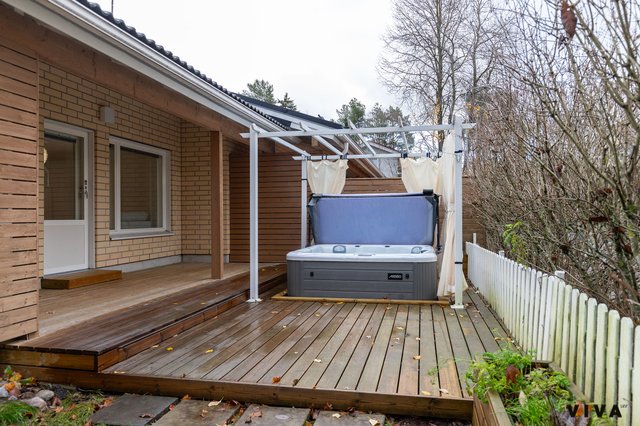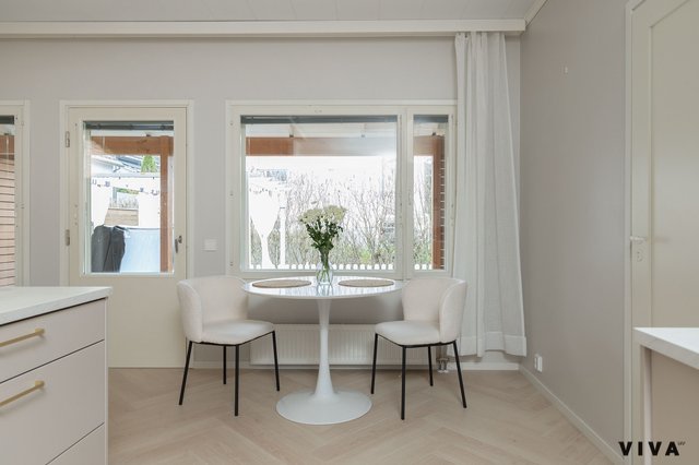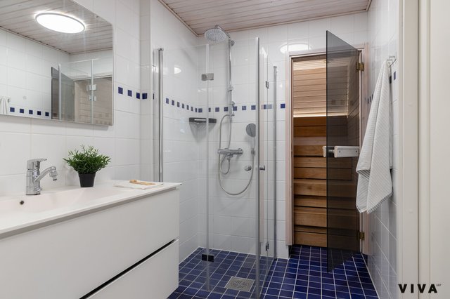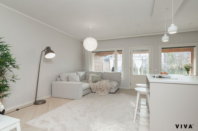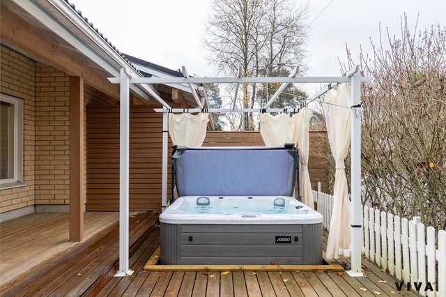 Kahden makuuhuoneen ansiosta tämä koti sopii mainiosti niin pariskunnille kuin pienille perheillekin. Kylpyhuoneessa on mukavuutta tuova lattialämmitys, ja oma sauna tarjoaa rentouttavia hetkiä arjen keskellä. Erityisenä lisänä on oma piha porealtaalla, jossa voi nauttia ulkoilmasta ja rentoutua.