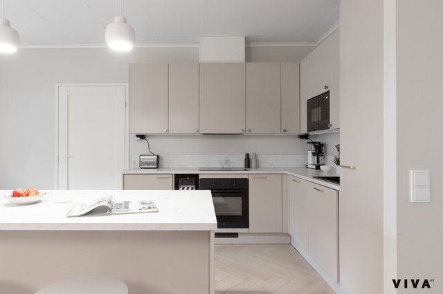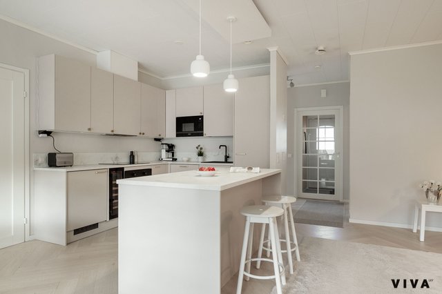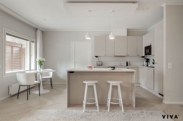 Tämä valoisa ja tilava rivitaloasunto Mäkkylässä tarjoaa erinomaiset puitteet mukavaan asumiseen. Vuonna 2006 valmistunut koti on hyvässä kunnossa ja sisätilat on remontoitu täysin vuonna 2023. Keittiössä on suuri saareke, joka tarjoaa runsaasti tilaa ruoanlaittoon ja seurusteluun.