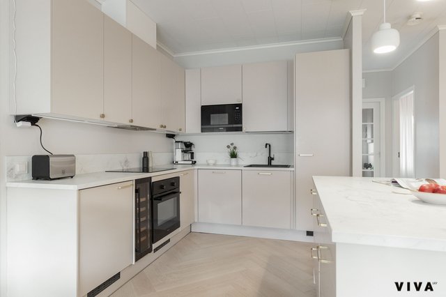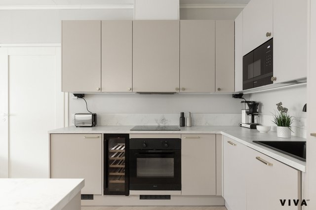 - Jääkaappi, erillinen pakastin, uuni, liesi, ja viinikaappi