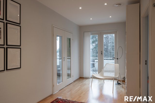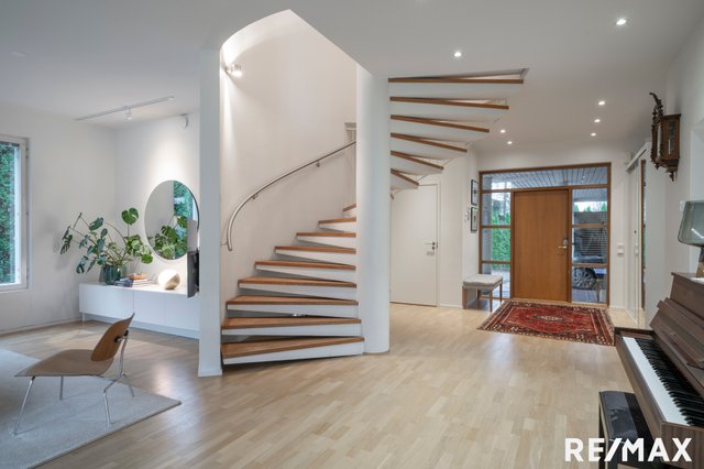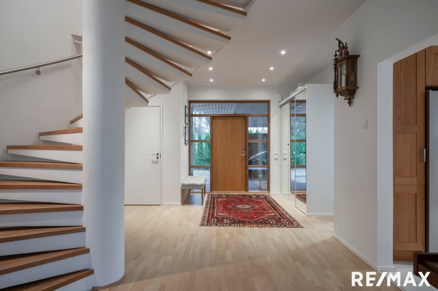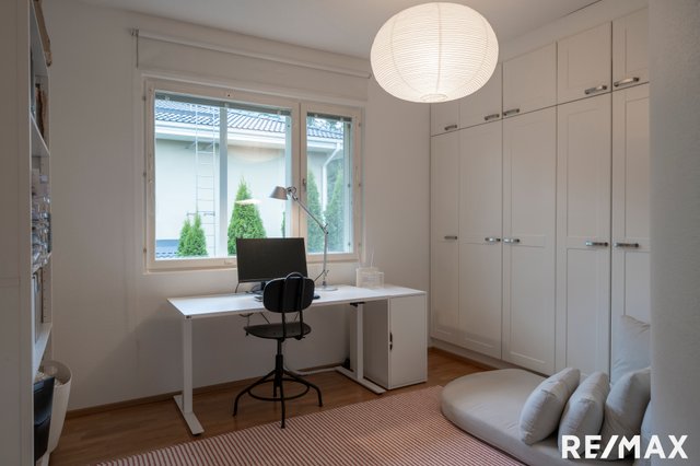 - Yläkerran arkiolohuone (huonekorkeus yläkerrassa 2,65 m), jossa lattia on tammiparkettia ja seinät maalattua lasikuitutapettia. Kulku yläkerran isolle terassiparvekkeelle. Alakerran eteisessä iso peililiukuovikaapisto.