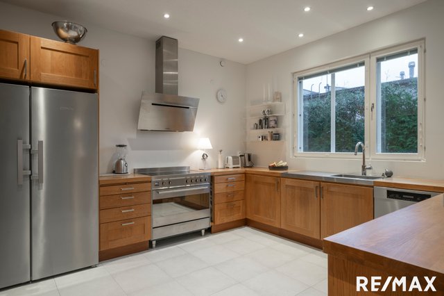 - Keittiön kaapit Accente Tibrokök tammikeittiö, tammitasot, jääkaappi, pakastin, erikoisleveä uuni ja induktioliesitaso, kalustemikroaaltouuni, astianpesukone, liesituuletin, teräsallas, lattia laattaa, lattialämmitys, seinät maalattu lasikuitutapetti.