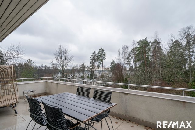 Arkiolohuoneesta on käynti suurelle lounaaseen avautuvalle terassiparvekkeelle, joka on ollutkin kesäiltaisin ahkerassa käytössä. Sieltä on näkymä talojen yli aina merelle asti.