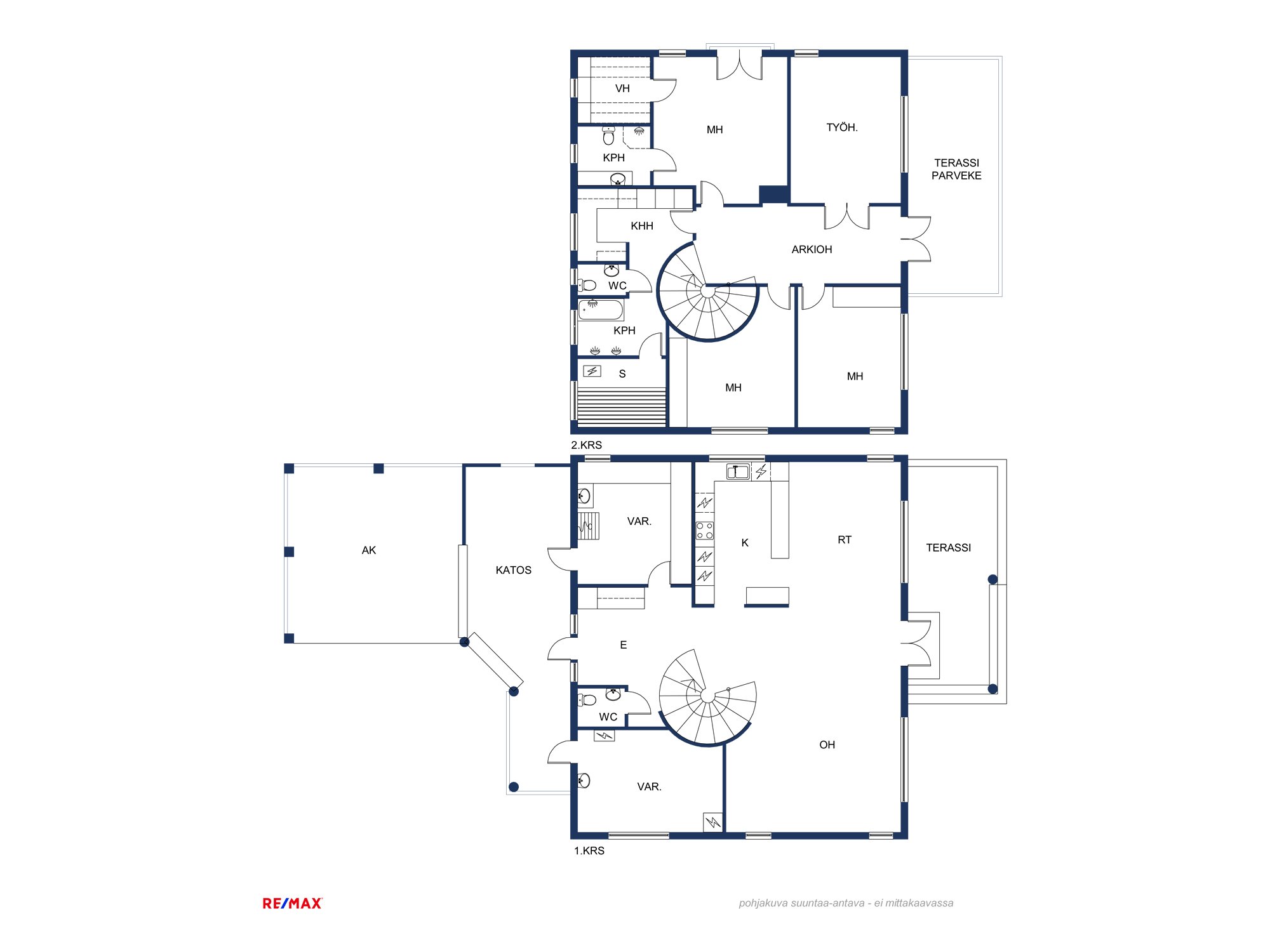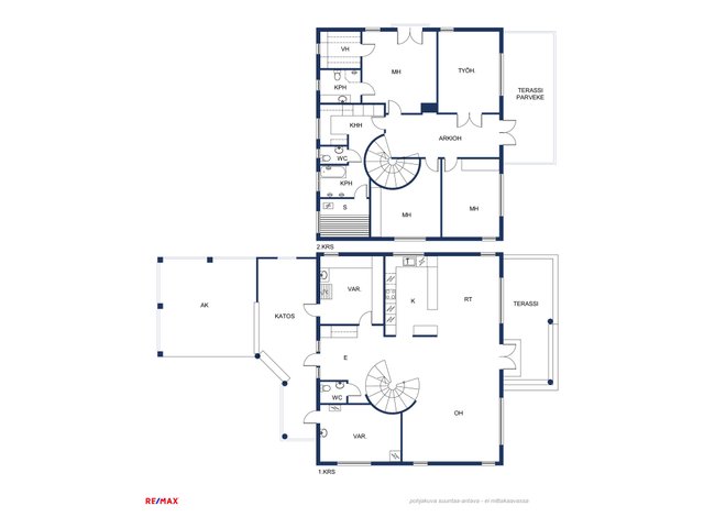 5h, k, rt, 2x kph, 2x erill. wc, khh, s, vh, lämmin varasto, terassip., lasitettu terassi, piha, autokatos 2:lle autolle