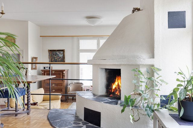 persoonallinen koti, takka luo tunnelmaa, autokatos,
